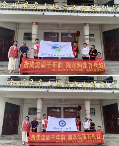 2025年7月7日, “ 守艺湘承 ”实践队深入全州县东山 瑶族乡,踏入东山瑶族文化陈列馆,开启了一场具有深度 的文化体验之行 。 队员们通过亲身感受瑶族服饰的独特魅 力,深入领会其精湛技艺与文化内涵, 以青年的视角探寻 传承千年的瑶族文化的密码。 实践队首站到达上塘村,对东山瑶族服饰非物质文化 遗产代表性传承人奉建英女士进行了专访 。身着艳丽瑶族 传统服饰的奉建英女士, 向队员们详尽介绍了服饰的制作 材料、独特工艺以及其所承载的深厚文化底蕴 。随后,她 带领队员们实地观摩服饰制作的流程,并生动阐释了服饰 纹样的丰富寓意,使青年学子们深刻体会到瑶族文化的独 特风采。 东山瑶族乡历史源远流长,瑶族文化底蕴厚重 。作为 重要的文化传承窗口,全州县东山瑶族文化陈列馆收藏了 大量珍贵的瑶族文物与史料 。进入馆内,仿若穿越时空, 一部完整的东山瑶族迁徙史、 民族文化发展史以及生活图 景展现在眼前 。馆内陈列的生活用具、 民族服饰等展品, 在负责人专业的讲解下,助力队员们清晰地理清了瑶族文 化的发展脉络。 该馆负责人表示,未来将持续发挥文化阵地的优势, 举办形式多样的活动,吸引更多年轻人走进陈列馆,深入 了解瑶族文化的魅力,让这一文化瑰宝在新时代展现新的 光彩,进一步筑牢中华民族共同体意识。 图为全州东山瑶族乡采访现场 黄捷翔 供图 图为全州瑶族文化陈列馆中讲解员介绍瑶族服饰 黄捷翔 供图 图为“守艺湘承队”在全州县东山瑶族文化陈列馆合影 黄捷翔 供图 实践团队:守艺湘承队 带队指导老师:郑芸昕 李欢 团队成员:沈彬翎 李佳蔚 李诗雨 方旖涛 黄捷翔 郑雅心 通讯员:方旖涛
