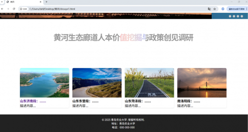 青春聚力生态保护,实践擘画发展蓝图。2025 年暑期,青岛农业大学人文社会科学学院 “绿廊温度,金堤众缮” 赴鲁豫黄河生态廊道调研服务团,沿着黄河流域足迹,深入济南、洛阳、菏泽、聊城、德州、东营六地开展实地调研,全面收集生态、民生、文化相关数据,后续整合调研成果搭建数字化平台,为黄河生态廊道长效治理与绿色发展提供科学支撑。 一、实地调研:跨区域、多维度解码鲁豫黄河生态廊道核心现状 调研团以 “生态肌理解码 + 民生需求挖掘” 为核心,通过现场勘察、深度访谈、问卷调研、公益实践等方式,分区域开展系统性调研,累计完成问卷调研超 1200 份、深度访谈 300 余人次,收集生态指标、民生反馈、文化素材等一手信息 5000 余条。 在济南济阳区,深入葛店村稻香湾探索“生态价值转化共富”的“葛店路径”,记录村企合作盘活水土资源、发展特色产业的实践细节,同时走进黄河健身公园与居民面对面交流,收集关于绿色空间服务优化、文化活动丰富的民生诉求; 在洛阳,先后考察孟津黄河湿地公园与黄河中下游地理分界线纪念碑,通过走访游客、管理人员及居民,掌握湿地公园改善区域空气质量、调节局部气候的生态成效,以及其带动周边文旅产业发展的民生价值,同步挖掘纪念碑承载的治黄历史与黄河文化内涵; 在菏泽黄河岸边,与居民、商贩、放牧人深入对话,收集“黄河号子”“治黄传说”等民俗文化素材,梳理近百年治黄工程从“被动防洪”到“主动生态修复”的演进脉络,记录生态廊道对农业灌溉效率、畜牧业规模、旅游业接待量的提升作用,调研间隙还参与“拾捡垃圾”公益活动,以实践守护廊道生态; 在聊城,以东阿国家黄河森林公园为核心调研区域,观察廊道内居民骑行、散步等绿色出行场景,与树荫下乘凉老人交流生态廊道建成后生活品质的变化,同步开展垃圾清理行动,维护廊道环境; 在德州,重点调研黄河涯村与黄河古道森林公园,勘察古黄河河道植被生长状况,记录落叶堆积、杂草杂乱及游客垃圾污染等生态维护痛点;在东营黄河入海口区域,围绕“生态保护成效与公众认知”展开调研; 在黄河河口法治文化主题园学习《中华人民共和国黄河保护法》,通过问卷了解公众对法律的认知程度与生态保护参与意愿,实地勘察入海口湿地植被覆盖、珍稀候鸟栖息情况,梳理生态教育功能与民生服务设施的优化方向。 二、平台建设:整合调研数据构建流域治理数字化载体 为系统沉淀调研成果,团队以“调研足迹可视化+数据整合结构化”为核心,搭建黄河生态廊道鲁豫段数字化平台。平台一方面通过地图标注功能,精准呈现团队在济南、洛阳、菏泽、聊城、德州、东营六地的调研路线与关键点位,清晰展示每处调研地点的考察时间、核心议题与现场场景,让调研轨迹可追溯、可查看;另一方面,对六地收集的多维度数据进行系统化处理——按“生态-民生-产业-文化”分类整合水质指标、植被覆盖率、居民满意度、产业效益、民俗素材等数据,建立标准化数据库,通过数据可视化模块以图表形式直观呈现各类数据的分布特征与关联关系,既方便团队复盘调研过程、深化研究分析,也为后续沿黄区域生态治理、民生服务优化及产业发展提供清晰的调研数据支撑,真正实现调研成果的数字化、系统化留存与高效应用。 (作者:王美芳) |