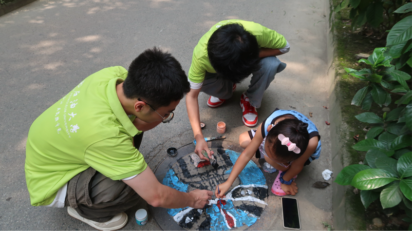 2025年7月10好至7月19号,一场为期10天的“古韵非遗,柚爱同行”川剧文化推广活动,在成都市郫都区郫筒街道晨光社区画上圆满句号。此次活动由“古韵非遗”暑期社会实践队携手优力课社会工作服务中心、向锋行志愿服务队联合主办,以“分阶段推进、双主线并行”为核心思路,既为社区青少年搭建起川剧文化学习的平台,又通过环境改造让川剧元素融入社区角落,实现了“文化启蒙”与“场景营造”的双重突破。 启蒙铺垫:从“知”川剧到“画”川剧,打好文化基础 活动首阶段,团队以“知识普及”与“前期筹备”为重点,为后续活动筑牢根基。在社区新时代文明实践站的青少年课堂里,每天都充满着欢声笑语与文化探索的热情。志愿者们摒弃枯燥的理论讲解,转而采用“视听结合+实物互动”的方式:播放《白蛇传》《群英会》等川剧经典片段时,同步讲解“生旦净末丑”的行当特点;展示红脸关羽、蓝脸窦尔敦等经典脸谱实物时,用“颜色密码”帮助孩子们记忆——“红色代表忠诚正义,就像我们熟悉的关羽;白色象征奸诈多疑,比如曹操”,生动的比喻让孩子们快速掌握川剧脸谱的文化内涵。 图为实践队员再给儿童上川剧非遗文化课。林文洁 供图 课堂互动环节更受青睐。“脸谱简笔画”课程上,志愿者提前准备好简化版脸谱轮廓,孩子们拿起彩笔,根据学到的“颜色知识”自由创作,有的给脸谱添上金色纹路,有的在额头画上山川图案,4天时间里累计完成60余幅充满童趣的入门作品。与此同时,社区改造组的工作也在紧锣密鼓推进:队员们携带清洁工具,对社区中心广场的20余米长墙面、主干道10余个井盖进行彻底清理,铲除旧涂层、擦拭顽固污渍,让原本斑驳的表面恢复干净底色;随后结合社区“熊猫文化”特色与川剧元素,反复打磨设计方案,最终用白色粉笔在墙面勾勒出“川剧变脸艺人”“熊猫捧脸谱”等主题轮廓,在井盖标记出“小旦”“武生”等简约形象,为后续创作做好充分准备。 图为儿童在展示自己绘制的脸谱。蒋奕雯 供图 深化体验:从“做”道具到“绘”场景,感受文化魅力 图为实践队员在教儿童制作粘土川剧小人。蒋奕雯 供图 进入活动中期,“动手实践”成为关键词,青少年与社区改造的两条主线同步升级,让川剧文化从“纸上”走向“手上”。青少年课堂变身“川剧工坊”,志愿者们带来废旧报纸、彩色卡纸、塑料瓶、扭扭棒等材料,带领孩子们制作川剧特色道具。“先把报纸对折,卷成细长条,用胶带固定,就能做出‘翎子’的骨架……”在志愿者的耐心指导下,孩子们一步步完成“翎子”“脸谱挂饰”的制作,不少孩子还发挥创意:有的用彩笔在“翎子”上画满花纹,有的给“脸谱挂饰”加装可旋转的“变脸”层,还有的用扭扭棒做出“髯口”的造型。“我做的是穆桂英的‘翎子’,她是勇敢的女英雄!”10岁的小朋友王梓轩举着自己的作品兴奋地说。据统计,此阶段累计完成40余件创意手作,孩子们在裁剪、粘贴、绘画的过程中,不仅提升了动手能力,更深入了解了川剧服饰、道具背后的文化故事。 图为实践队员在帮助儿童用纸袋和废品制作川剧服饰。宋悦 供图 社区改造现场同样热闹。改造组队员们根据前期设计方案,带着丙烯颜料、画笔、调色盘等工具投入上色工作。墙面绘制区域,队员们分工协作:有人负责调配色彩,将“川剧红”“熊猫黑”“盖碗茶绿”等颜色精准调和;有人专注填充色块,让川剧变脸艺人的服饰、熊猫的毛发逐渐鲜活;还有人负责细节勾勒,用细笔为脸谱添上眉眼纹路、为盖碗茶画上杯沿花纹。井盖改造则更注重“小巧精致”,队员们根据井盖圆形特点,绘制简化版的川剧脸谱——有的画着笑面的“丑角”,有的画着端庄的“旦角”,原本单调的灰色井盖,变成了一个个“微型川剧文化展”。路过的居民纷纷驻足观看,不少家长还带着孩子边看边讲解,让文化氛围在社区中自然流动。 图为实践队员在进行墙绘绘制。宋悦 供图 成果落地:从“创”作品到“留”故事,实现文化传承 活动最后阶段,“成果转化”与“故事记录”同步推进,为整个活动画上完整句号。青少年们不再局限于课堂创作,而是走进社区改造现场,成为“小小非遗传播者”。在志愿者的分组带领下,孩子们拿着画笔,参与到井盖补色、墙面细节完善、儿童斑马线装饰等工作中:有的蹲在井盖上,为“丑角”的脸谱补上腮红;有的站在墙面旁,为熊猫的爪子添上黑色线条;还有的在儿童斑马线两侧,画上迷你版川剧脸谱图案,让孩子们过马路时也能感受到文化气息。“能把学到的川剧知识画在社区里,特别有成就感!”参与墙面绘制的小朋友李雨桐说。 图为实践队员在和儿童共同完成井盖绘制。林文洁 供图 改造组则聚焦“收尾完善”,对所有创作成果进行细致检查:墙面色彩不均处重新补涂,井盖边缘的毛边仔细修整,确保每一处作品都达到最佳视觉效果。与此同时,团队还专门抽调3名队员组成“采访小组”,开展“追光者故事”记录工作。他们带着笔记本和录音笔,与社区5位优秀志愿者深入交流,倾听他们多年来参与社区服务的经历——从疫情防控时的物资配送,到日常的老人关爱服务,再到此次助力川剧文化活动的点点滴滴。“能为社区文化建设出一份力,看着孩子们喜欢川剧、居民们满意环境变化,再累也值得。”志愿者张阿姨的话,道出了许多社区服