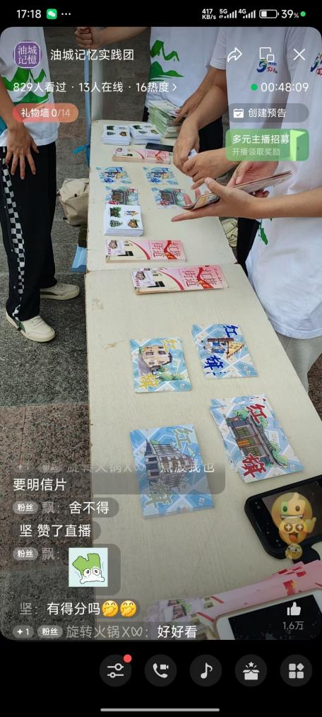 “油城记忆”活起来!广油实践团文创摆摊+直播亮相茂南红旗街道 2025年8月28日,广东石油化工学院“油城记忆”实践团在茂名市茂南区红旗街道江滨公园旁,举办文创产品摆摊活动并同步开启直播,活动得到滨河社区工作人员的全程协助支持,有效激活了地方文化传播活力。 图1 “油城记忆”实践团摆摊现场 活动现场,实践团推出的红旗系列文创产品成为核心亮点,包括明信片、三折页、贴纸等品类。所有产品围绕茂名四座标志性坐标展开创作,分别是苏联专家楼、江滨公园、茂名市百货大楼与咏春拳馆,将建筑特色与历史底蕴融入设计,让每一件文创都成为承载油城记忆的载体,吸引众多市民驻足观赏。 图2 “油城记忆”实践团设计的三折页 图3 “油城记忆”实践团设计的文创产品原稿 图4 “油城记忆”实践团向居民介绍文创产品 为扩大文化传播覆盖面,实践团创新采用“线下摆摊+线上直播”双模式。直播过程中,团队成员通过镜头细致展示文创产品的设计理念与制作细节,同步讲解四座地标背后的历史背景与文化价值,借助实时画面让网友直观感受茂名的城市文化魅力,吸引大量网友在线关注互动。 图5 “油城记忆”实践团直播现场截图 滨河社区工作人员在活动筹备与开展期间,积极协助实践团完成摊位布置、现场秩序维护,并向过往市民介绍活动意义,为活动顺利推进提供了有力保障,形成“校社联动”传承地方文化的良好氛围。 图6 滨河社区工作人员协助“油城记忆”实践团摆摊 此次活动是“油城记忆”实践团助力地方文化传承的具体实践,既通过文创产品让茂名历史文化“看得见、带得走”,又借助直播形式打破地域限制,进一步提升了油城文化的传播力与影响力。未来,实践团将持续挖掘茂名历史文化资源,创作更多优质文创作品,为推动地方文化建设、助力“百千万工程”贡献青春力量。 图7 “油城记忆”实践团与滨河社区工作人员合影 图片:“油城记忆”实践团 撰稿:许甯钰 审核:吕慧雯 |