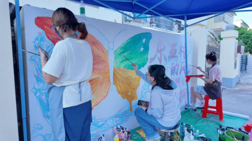 为号召广大青年学子踊跃参与“百千万工程”建设,推动学业知识与乡村需求精准对接,为广东乡村高质量发展注入青春动能。近日,惠州学院服装学院于芳副教授、孙山山书记带领冼桂莲等8名学子,组成“百千万工程”突击队——我们都“绘”队,走进惠州市汝湖镇东亚村开展“东亚叠彩,乡筑汝湖”墙绘行动,为乡村换上独具特色的艺术“外衣”。 线上研讨 绘梦蓝图 在活动开始前,突击队与东亚村工作人员进行线上交流,结合墙面面积大小,位置分布,共同研讨墙绘主题和制定方案。先确立项目主题,助力乡村振兴。再明确墙绘尺寸面积大小,列清所需墙绘工具清单。并设计好墙绘样式草图,细化元素,尽量要将墙绘设计图完整,并搭配好整个色调及色彩,做到符合主题。最后现场勘查所需墙绘完整度,处理好墙面完整度,为之后上色提供了良好基础。 彩绘筑梦 乡韵焕新 经过前期周密筹备,我们都“绘”队墙绘行动于9月2日正式启动,为期5天,计划完成约50平方米、共4幅墙绘作品。 队员们热情似火,分工井然有序,从精心绘制草图、精准调配色彩到细致上色,无惧炎炎烈日与蚊虫侵扰,全情投入每一笔一划,将东亚村深厚的历史文化底蕴与现代乡村风貌巧妙融合于墙绘之间,以艺术之笔为东亚村绘就多彩新篇章。 一面墙绘匠心绘制,专为营造梦幻般的美丽庭院而生。其上,繁花似锦,草木葱茏,各色花草交织成一幅生机勃勃的自然画卷,为庭院添上一抹不可言喻的雅致与风情。 一面墙绘是以“东亚风华”为主题,这幅墙绘用缤纷灵动的笔触生动地展现了绿美宜居家园的美好愿景,画面中,杨坤如将军故居静诉历史,仙女姿添灵韵,豪华汽车彰显产业实力,舞狮与篮球共展青春活力,特色美食飘散浓浓乡情。多彩的画面激励村民积极参与到“百千万工程”中来,共同为打造美丽家园贡献力量。 一面墙绘以“东亚村的风促使我们相拥”为主题,惊艳亮相。左侧斑斓蝴蝶翅膀栩栩如生,仿佛下一秒就要振翅高飞,吸引着人们纷纷前来,摆出各种创意姿势拍照留念。右侧“东亚村的风促使我们相拥”的文字,传递着温暖与情谊,让每一次打卡都意义非凡。 一面墙绘是以“东亚汝湖”为主题,用明快饱满的色彩挥洒出村庄的名字,简洁大气的设计兼具现代美感与乡土情怀,寄托了对这片土地深厚的情感与美好的祝福,呼吁每一位村民同心同德、共建共享幸福家园。 素墙变彩卷 真情映民心 在本次墙绘创作过程中,生动缤纷的墙面吸引了众多东亚村村民驻足围观和热情参与。热心的村民主动为大家带来风扇消暑,提供临时存放材料的场所与稳定水源,还帮忙接电点亮照明灯,保障队员们夜间作业。路过的学生好奇地围绕在墙边,眼中闪烁着对艺术创作的向往;不少村民驻足称赞,关切地询问队员们是否劳累,提醒注意防暑休息。老人们在成品前微笑点头,对大学生们为村庄带来的新色彩表示由衷的赞赏。 正是在与村民一次次真诚的互动中,我们都“绘”队不仅获得了宝贵的创作支持,更深切感受到了乡村淳朴的温暖与热忱。这一切都让此次社会实践超越墙绘本身,成为一场青春与乡土的双向奔赴。 墙绘不仅为东亚村增添了绚丽的艺术色彩,更成为一扇向村民生动展示本土文化的窗口。通过将将军故居、七仙女传说、舞狮等元素绘上墙面,活动促使村民更加深入地了解和关注东亚村独特的历史文化与民俗传承,从而显著提升了大家对家乡的认同感与自豪感。 与此同时,与青年队员们共同交流的过程,也让村民们感受到年轻一代对乡村发展的热忱与担当,进一步凝聚了共建美好家园的共识。此次墙绘实践以艺术为载体,将“百千万工程”和乡村振兴的理念潜移默化地融入村民心中,为东亚村的高质量发展注入了持久而深厚的精神动力。 (惠州学院我们都“绘”队) |