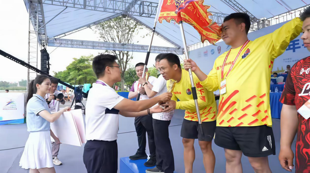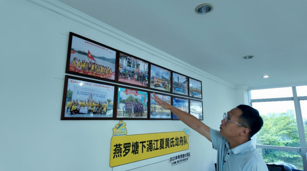 2025年7月24日,为探寻深圳市宝安区燕罗塘下涌江夏黄氏龙舟队以参与龙舟赛事延续习俗,用团队精神具象化文化内核的积极作用,广东财经大学大数据与人工智能学院涌龙擘洲实践团溯源当地龙舟文化,在广东财经大学大数据与人工智能学院指导老师温浪奕、何镇宇和李雯霖的引导下,深入塘下涌社区,体验当地传统龙舟文化,在对塘下涌社区领导及老干部进行的深度访谈中解读塘下涌社区在岁月洗礼中沉淀的人文密码,为弘扬和推广龙舟文化贡献广财学子力量。 塘下涌社区领导及老干部畅谈:从村落记忆到龙舟文脉,解码一方水土的精神密码 2025年8月24日上午,在宝安区燕罗塘下涌社区党群服务中心,广东财经大学大数据与人工智能学院涌龙擘洲实践团与社区党委副书记黄金基同志、《塘下涌村志》执行主编黄沛容同志、塘下涌社区退休老干部黄耀棠同志在社区团委书记黄雪仪同志的引荐下展开访谈。聆听龙舟文化如何在洋涌河畔从到早期鱼塘划渔艇到现代龙舟竞技薪火相传。 水乡划艇承古韵,洋涌河畔展舟影 塘下涌社区位于深圳市宝安区塘下涌社区半水乡半山区地带,早期村民已有划艇比赛的习俗。从解放初期到改革开放前,村民常在鱼塘边举办划艇比赛。文化大革命期间,龙舟活动因被视为“破四旧”而中止。改革开放后,龙舟文化逐渐复兴。1997年,在深圳市宝安区五指耙水库,村民自发组建塘下涌龙舟队参加宝安区松岗镇首届龙舟赛,获得第三名。二十一世纪初,深圳市茅洲河经治理,其支流洋涌河成为当地各龙舟队的龙舟训练和比赛场地。 自2016年起,在上级部门与社区两委的持续支持下,塘下涌社区逐步组建了标准龙舟队——宝安区燕罗塘下涌宝安区燕罗塘下涌江夏黄氏龙舟队。该龙舟队以“塘下涌团结一致必成功”为口号,征战粤港澳大湾区各大龙舟赛事。龙舟队通过系统性训练,逐步建成标准化训练体系,实现竞技水平跨越式提升,屡创佳绩,现已成为粤港澳大湾区龙舟运动的标杆队伍 竞渡精神聚乡魂,薪火相传舟不息 图 2宝安区燕罗塘下涌江夏黄氏龙舟队荣誉墙部分 竞渡龙舟运动不仅是塘下涌的传统习俗,更凝聚了社区的精神认同。 宝安区燕罗塘下涌江夏黄氏龙舟队,先后斩获多项本地赛事冠军,取得了2023年粤港澳大湾区深圳·宝安茅洲河龙舟赛本地组第一名、第一届全国全面健身大赛华南区——龙舟比赛暨2024年粤港澳大湾区深圳·宝安茅洲河龙舟赛深圳组第一名、2025年粤港澳大湾区深圳·宝安茅洲河龙舟赛深圳组第一名等显著成绩。 社区党委副书记黄金基表示,宝安区燕罗塘下涌江夏黄氏龙舟队的成功得益于传统观念、村委领导的支持以及龙舟队年轻人的拼搏精神。塘下涌社区群众希望龙舟比赛能持续举办,传承传统文化。 二、专访龙舟队队长:宝安区燕罗塘下涌江夏黄氏龙舟队绽放光彩 2025年8月14日,在宝安区燕罗塘下涌社区党群服务中心,广东财经大学大数据与人工智能学院涌龙擘洲实践团与刚刚蝉联粤港澳大湾区龙舟锦标赛三连冠的宝安区燕罗塘下涌江夏黄氏龙舟队队长黄业民联合举办了本次专访,深入探寻这支民间龙舟劲旅的成长历程,探讨龙舟文化在当代的传承与推广需求。 图 3采访龙舟队队长黄业民 科学训练铸就竞技实力 宝安区燕罗塘下涌江夏黄氏龙舟队以专业化训练体系为根基,聘请国家级退役运动员担任教练,队伍有26名成员,团队分工明确:鼓手作为节奏核心,统领全队划桨频率与士气;20名划手分列左右两舷,提供强劲动力;尾部舵手精准把控航向,确保团队协同发力。龙舟队名“宝安区燕罗塘下涌江夏黄氏龙舟队”源于社区大姓——黄,黄氏统称“江夏黄氏”,彰显浓厚的地域文化认同;而“塘下涌,团结一致必成功”的口号,则凝结了队伍拼搏奋 梯队建设传承龙舟精神 队伍注重人才梯队培养,每年吸纳新生力量。据黄队长回忆,在2024年,一名18岁新队员仅经两个月高强度训练便登上赛场,展现出年轻一代的吃苦精神与蓬勃活力。目前,队伍成员以80后组织者兼鼓手、90后主力划手和00后新生代为主,年龄结构合理,整体呈现年轻化趋势。作为队长,黄业民以身作则,在严格管理的同时注重思想引导,形成“严慈相济”的团队氛围。此外,队伍沿袭“老带新”传统,由资深队员辅助教练传授技术经验,确保龙舟技艺与文化精神的代际传承。 赛事历练助推心态成熟 从初登冠军领奖台到实现三连冠,队伍在实战中不断成长。2025年粤港澳大湾区茅洲河龙舟赛中,小组赛意外位列第三后,全队迅速调整战术,凭借扎实的基本素养与默契配合,最终逆袭夺冠。展望未来,队伍计划注册成立龙舟协会,以更规范的组织形式参与深圳各区赛事,并逐步迈向全国乃至国际高水平竞技舞台。与此同时,队长黄业民愿积极通过社交媒体分享训练日常,携手龙舟界前辈共同推广龙舟文化,助力龙舟运动申奥进程。 “塘下涌,团结一致必成功”——这句铿锵有力的口号,不仅诠释了宝安区燕罗塘下涌江夏黄氏龙舟队的团队信念,更映射出中国传统龙舟文化在新时代的旺盛生命力。 三、劈波斩浪砺精兵——直击宝安区燕罗塘下涌江夏黄氏龙舟队训练场地 在广东财经大学大数据与人工智能学院涌龙擘洲实践团专访宝安区燕罗塘下涌江夏黄氏龙舟队队长黄业民后,受邀前往龙舟队日常训练基地参观。一进门,广东财经大学大数据与人工智能学院涌龙擘