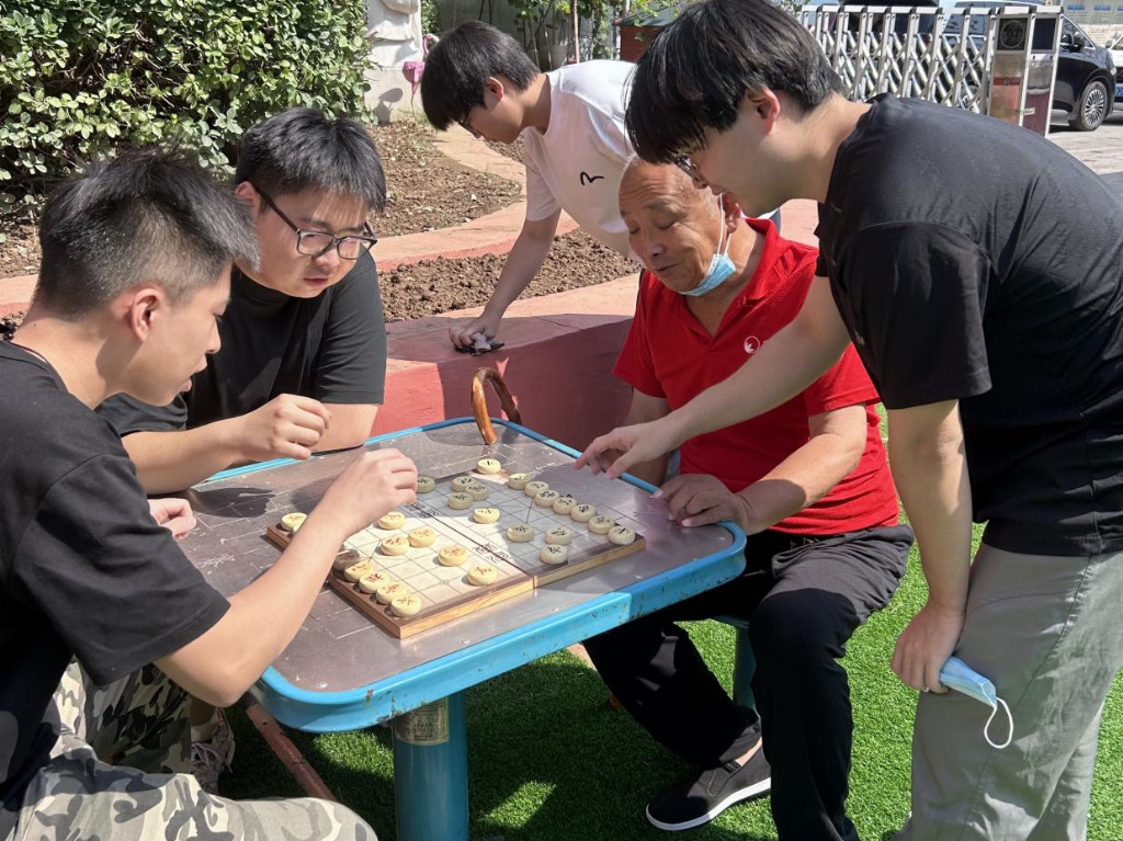 为了学习相关知识,“相约青春”实践团成员于2025年8月9日至2025年8月16日来到山东省济南市历下区风歧路2999号济南华森老年公寓开展了为期8天的社会实践活动。 图为实践团成员在济南市历下区济南华森老年公寓的合照 8月9日至8月16日,7名青年学子组成相约青春实践团,走进山东省济南市历下区凤歧路2999号济南华森老年公寓,开展为期8天的“三下乡”暑期志愿服务活动,用实际行动为老人们送去关怀与温暖。 图为实践团成员在跟老人一起听她讲述趣事 阳光洒在养老院的草坪上,实践团成员围在一位老人身旁,老人脸上洋溢着笑容,正绘声绘色地讲述着趣事,三人听得十分专注,氛围温馨又欢乐。 图为实践团成员在给老人按摩并慰问老人 活动期间,学子们轻握老人的手,实践团成员来到老人身边,细心为老人按摩,陪老人聊天,给老人带去温暖与慰藉。 图为实践团成员在陪老人下象棋 活动期间,学子们主动邀请喜爱象棋的老人“对弈”,棋盘旁,老人们落子从容,学子们认真讨教,不仅切磋了棋艺,更拉近了代际距离,欢声笑语时常回荡在公寓活动区。 图为实践团成员搀扶老人活动 “这些孩子就像自家孙辈一样亲,不仅帮忙干活,还可以聊天解闷。”公寓里的王奶奶说。8天的志愿服务虽短,但学子们用真诚与热情,让老人们感受到了青春力量带来的温暖,也让自身在实践中深化了对“敬老、爱老、助老”传统美德的理解。 |