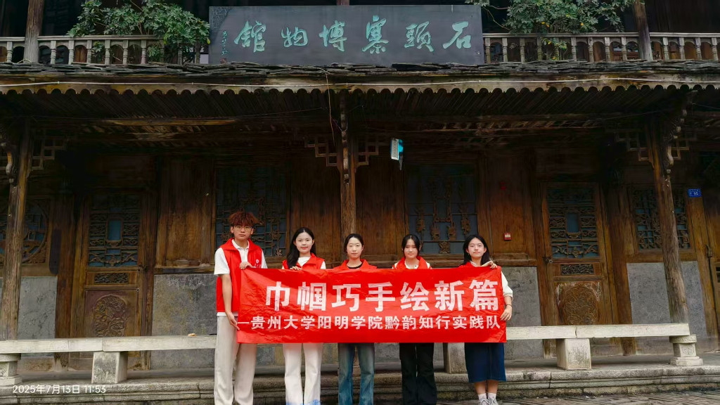 在贵州安顺镇宁布依族苗族自治县的石头寨,依山而建的青石民居与蜿蜒的白水河相映成趣。然而,比这自然风光更牵动人心的是从一座座古朴工坊里流淌出的靛蓝——这里被誉为“蜡染之乡”,千年不褪色的蓝白艺术在布依族妇女的巧手下代代相传。 古法浸染,一笔一画皆岁月 7月13日贵州大学黔韵知行队深入贵州省镇宁县石头寨,探寻蜡染的起源之美。走进当地蜡染工坊,浓郁植物染料气息扑面而来,七十岁的马阿婆端坐于靛蓝染缸前,布满岁月刻痕的双手却异常灵巧。蜂蜡在特制铜刀尖上融化,随着她手腕沉稳的起伏,古老的花鸟鱼虫图腾便在素白棉布上精准“生长”。她身后的木架上,刚出染缸的布匹在阳光下流淌着深邃的蓝,晾晒时如同悬挂的静谧河流。 对话手艺人,指尖上的坚守与创新 在当地蜡染工坊,实践队有幸对贵州省“三八”红旗手马新芬老师进行了深度采访。马新芬作为当地知名的蜡染手艺人,自幼跟随长辈学习蜡染记忆,至今已有60多年的经验。她的工坊里摆满了琳琅满目的蜡染作品,从传统的服饰、壁挂,到融入现代元素的丝巾、手包,再到蜡染纹样上的山,水,天上的星星,水漩涡以及“狗的牙齿”,每一件都倾注了她对蜡染艺术的热爱与执着,象征着布依族的传统民族工艺和民族生活。 她表示,蜡染是一项极为细致且耗时的工艺,需经过绘图、点蜡、染色、脱蜡等多道工序,每一道工序都需严格把控,容不得半点马虎。其中,点蜡环节最为关键,需用蜡刀蘸取熔化的蜂蜡,在白布上精心绘制图案,线条的粗细、疏密全凭经验和手感。而染色过程则充满惊喜,随着布料在蓝靛染液中一次次浸染,颜色逐渐加深,最终呈现出独特的蓝白相间效果。“28种草药,少一种都会褪色”马新芬感叹道,蜡染独特的“冰纹”效果,更是无法复制,每一件作品都独一无二。 青春直播间:让蜡染“潮”起来 为了让更多人近距离感受蜡染的魅力,实践队在蜡染工坊内进行了一场精彩的直播介绍蜡染的活动。直播过程中,传统手艺人现场展示蜡染制作技巧,并对每一件蜡染产品的设计理念、制作工艺和文化内涵进行详细讲解。直播间的观众们被蜡染的独特魅力深深吸引,纷纷点赞留言,激发了许多人的购买欲望。此次直播活动不仅帮助当地手艺人拓宽了销售渠道,增加了收入,也让安顺蜡染走进了更多人的视野,为非遗文化的传播与传承注入了新的活力。 这场青春与非遗的相遇,或许没有惊天动地的成果,却在每个人心里种下了一颗种子——关于传承,关于热爱,更关于年轻一代该如何接过文化的接力棒,让古老技艺在新时代里,依然能唱出动人的歌。 图:陈雨琦,毛雨薇 文:毛雨薇 |