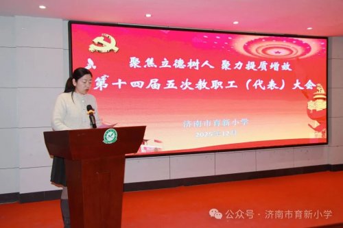 近日,济南市育新小学第十四届五次教职工(代表)大会在多媒体教室隆重启幕。全体教职工怀揣教育热忱齐聚一堂,通过民主协商汇聚智慧力量,以实干精神共绘学校未来发展宏伟蓝图。 副校长姚发雷主持此次会议 大会严格遵循既定议程,在庄严的国歌声中拉开帷幕。 学校党支部副书记王娟首先致开幕词。她对大会的召开表示热烈祝贺,并向辛勤耕耘在教学、管理、服务一线的全体教职工致以诚挚问候。王书记指出,教代会是学校实行民主管理和民主监督的基本形式,希望各位代表以高度的责任感和使命感,认真履行职责,将本次大会开成一次民主团结、求真务实、振奋人心的大会。 学校党支部书记、校长沈舜向大会作了题为《联育启新,推动高质量发展》的2025年学校工作报告。报告全面回顾了过去一年学校在党建引领、教学革新、德育铸魂、后勤保障、宣传赋能等方面的工作实绩:党建工作以主题教育为抓手,筑牢育人根基;教学工作聚焦课堂提质,构建高效课堂模式;德育工作紧扣学生成长需求,开展系列主题活动;后勤工作立足服务师生,完善校园设施建设;宣传工作讲好校园故事,提升学校品牌影响力。报告锚定“强化内涵发展、提升育人质量”的核心目标,深刻分析了学校当前发展面临的机遇与挑战,为下一阶段的高质量发展擘画了清晰蓝图。 随后,副校长姚发雷作《2025年财务工作报告》,详细公示了学校年度收支情况、重点项目资金安排及教职工福利保障相关预算,确保财务工作公开透明、规范有序。 针对各级部在2024年提出的关于教学资源配置、职称评审优化、教职工权益保障等方面的提案,校长沈舜逐一作出回应,明确了提案办理的责任部门、推进时间表和具体措施,承诺将把合理建议转化为实实在在的工作举措,切实回应教职工诉求。 在审议表决环节,全体教师认真研读两份报告,经过充分讨论,以举手表决的方式一致通过了2025年学校工作报告和财务工作报告,以及前期下发的《济南市育新小学日常师德教育制度》,《济南市育新小学师德失范督察机制建设方案》。 教师代表王瑜在会上作表态发言。她结合自身教学工作实际,分享了一线教师在教育教学、学生培养等方面的感悟与思考,并代表全体教师郑重表态,将以此次教代会为契机,立足本职岗位,践行育人使命,为学校高质量发展贡献自己的智慧与力量。 大会各项议程圆满完成后,副校长魏姝雅致闭幕词。魏校长指出,本次教代会是一次凝聚共识、汇聚力量的盛会,全体教职工要以此次大会为新起点,把会议精神转化为履职尽责的实际行动,以笃行实干的姿态投身学校各项事业,为推动学校高质量发展贡献智慧与力量。 此次教代会的成功召开,进一步统一了思想、凝聚了人心,明确了学校发展的重点任务与前行方向。全体教职工将以此次大会为新起点,以实干担当的精神投身教育教学工作,为全面提升学校办学水平、谱写育人新篇章而不懈奋斗。(作者:陈婧 | 初审:陈婧 | 复审:魏姝雅 | 终审:沈舜) |