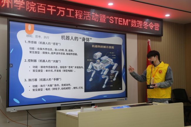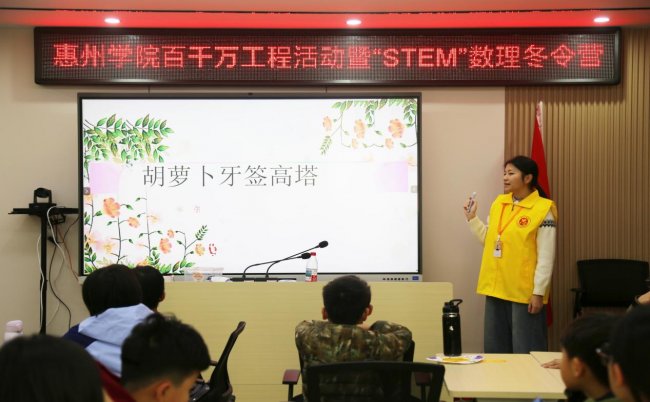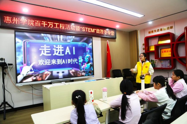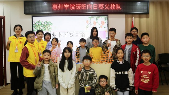调研方向:探索STEM教育在乡村与社区的落地路径,融合数学、科学、工程与艺术,提升儿童逻辑思维、动手能力与创新素养,构建“学业辅导+科创启蒙”双轨育人模式。 暖阳向日葵义教队成员合影 实践背景 为积极响应“百县千镇万村高质量发展工程”号召,推动城乡教育均衡与STEM教育普及,惠州学院暖阳向日葵义教队于2026年寒假期出发,开展“学业守护,素养拾光”公益助学与“玩转STEM”科创启蒙双轨实践。团队立足“数学+”特色,以STEM教育为核心,构建“学业+科创”融合育人体系。第一阶段聚焦学业夯实,第二阶段侧重思维拓展,力求实现“知识—能力—素养”阶梯式提升,为城乡教育融合发展注入青春动能。 实践过程 01 启程篇:红心助学暖寒冬 暖阳向日葵义教队步入平山中心小学,在庄严的升旗仪式后,正式启动“学业守护,素养拾光”公益助学活动,拉开了为期四天的学业辅导之旅。 启动仪式-平山中心小学合影 02 学业篇:夯实基础启思维 针对四至五年级学生期末复习需求,团队围绕数学、语文等学科开展系统性辅导,通过讲练结合、小组竞赛等形式,帮助学生巩固知识体系。 学生认真听讲 老师监督辅导 课堂教学 随着第一阶段活动温情收官,团队转战泰园社区党群服务中心,将实践重心延伸至“科创启蒙”,开启“玩转STEM”第二阶段实践。从课堂到社区,义教队持续探索教育服务的多样形态。 03 思辨篇:AI问未来·逻辑育思维 在AI思辨课上,孩子们围绕“AI时代我们为何学习”展开深度讨论,理解学习的重要性。数学魔术与侦探游戏将逻辑训练融入趣味情境,孩子们在“心灵感应”与“案件推理”中锻炼逻辑思维与问题解决能力。 AI思辨课堂教学 思辨课堂学生讨论 剧本杀课程讲解 教师指导活动 教师展示魔术 学生参与魔术互动 04 工程篇:结构之上启梦想 本篇章聚焦工程思维与动手能力培养。在“胡萝卜高塔”挑战中,孩子们运用三角形稳定性原理,搭建稳固结构体;在机器人课堂上,亲手组装调试,感受机械精妙;在火箭制作环节,从粘贴连接到发射升空,理解反冲原理。从地面到天空,孩子们在搭建中种下“工程师”的种子。 教师讲解机器人结构 学生动手拼装机器人 学生机器人作品展示 教师讲解高塔结构原理 教师指导学生搭建高塔 学生展示高塔成果 火箭发射原理讲解 学生动手制作火箭 教师指导组装调试火箭 05 艺术篇:编织韵律织数学 捕梦网手工课上,彩线在七孔圆环间规律穿绕,蕴含数学节奏与对称之美。孩子们在编织中创造梦想载体,体验数学规律转化为视觉艺术的过程,感悟理性与感性的交融。 教师示范编织捕梦网 学生动手操作 全体学生成品展示 06 竞技篇:嘉年华中练思维 “数理启蒙,玩转STEM”数学嘉年华设置记忆寻真、24点速算、七巧板拼图等六大闯关站,孩子们在竞技中巩固所学。 数独闯关活动活动 记忆寻真游戏 数字华容道挑战 七巧板拼图 24点速算活动 扔沙包活动 嘉年华积分兑换礼品 感悟分享 陈泳希(队长):今年是义教队成立第三年,义教队的课程从前年简单的趣味数学到今年的STEM主题课程,每一步都在诉说着队员们对数学教育理论的深 入见解。 戴信芬(党群服务中心副书记):本次活动,丰富了泰园未来社区“人文+科创”青少年服务活动。通过趣味化的数理实践,不仅提升了孩子们的科学素养,也缓解了家长的假期看护压力,更助力打造15分钟儿童友好生活圈,让泰园未来社区更温暖、更有活力。 团队名称:暖阳向日葵义教队 实践时间:2026年1月19日至22日、2026年2月4日至6日 实践地点:惠州市惠东县平山中心小学、惠东县泰园社区党群服务中心 指导老师:林培琪、赵显贵 团队成员:陈泳希、张耿为、邹欢、陈连芳、林钟涛、柳齐源、张洁梅、邓张晨、陈智颖、许晓暖、张永幸 |