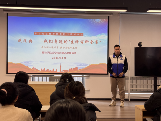 为传播法治精神、弘扬志愿风尚,推动法治精神与志愿服务精神深度融合、同频共振。潍坊学院法学院尚德志愿服务队秉承“践行志愿担当,贡献青春力量”的服务理念于1月21日至27日深入潍坊市怡心社区、鸢都社区、知微社区及虞河公园、人民广场等多个实践地,依托“法治筑基・1+4+N”特色品牌项目,开展系列普法志愿服务活动。活动紧扣“普法——让法律到群众中去”的核心主题,将专业法律知识转化为基层治理实效,让法治精神在群众心中落地生根。 沉浸式模拟法庭:让司法程序可视化 “沉浸式模拟法庭”环节中,服务队围绕邻里纠纷、财产争议等基层高频法律场景精选典型案例,队员分工饰演审判长、诉讼参与人等角色,规范还原庭审核心流程。严谨的程序呈现与专业的角色演绎,将抽象法律条文转化为直观可感的实践体验,让居民近距离感受司法庄严与公正。社区居民张阿姨感慨:“以往觉得法律遥远晦涩,这样的沉浸式体验让法律变得通俗易懂!”朴实的话语道出群众心声,也让基层群众的司法权威认同感持续强化,法治信仰在潜移默化中根植于心。 互动式普法宣讲:让法律知识精准化 围绕“互动式普法宣讲”,服务队构建分层分类的精准宣讲体系,按需供给法治服务。在社区场景中,针对高空抛物、物业管理、邻里纠纷等热点问题,结合真实案例开展专题宣讲,以通俗表达拆解法律条文、明晰权利义务;在公园、广场等人流密集区域,队员们化身“流动普法使者”,主动递上普法资料,围绕婚姻家庭、财产继承、消费者权益保护等民生关切答疑解惑。通俗易懂的讲解与精准务实的内容,吸引不少群众驻足交流、主动问询,现场互动氛围热烈,充分彰显了群众对法治知识的迫切需求与浓厚兴趣。 主动式法律咨询:让法治服务零距离 依托“主动式法律咨询台”,服务队在各社区设置专属服务点位,为群众提供“一对一”法律咨询服务。队员们发挥专业所长,耐心解答劳务纠纷、婚姻家事、财产分割、损害赔偿等民生法律问题,细致梳理法律关系、精准给出解决路径。队员们分享道:“从前总觉得法律知识只在课堂书本里,这次能亲手用专业帮居民解难题,才真正懂了法律的实际意义,也更坚定了用所学服务大家的初心。”此举切实回应了居民法律需求,引导群众树立“办事依法、遇事找法、解决问题用法”的法治思维,让法治服务真正接地气、暖民心、见实效。 此次寒假“三下乡”社会实践活动,以模拟法庭、普法宣讲、法律咨询等多元载体为桥梁,将法治“微光”汇聚成基层服务“暖流”,有效深化了居民法治认知,明晰了日常行为法律边界,为化解社区潜在矛盾、构建和谐稳定的基层治理格局注入了强劲法治动能。未来,服务队将持续深化“法治筑基・1+4+N”特色品牌建设,不断创新普法载体、拓展服务领域、提升服务效能,推动专业优势与民生需求精准对接,让专业优势与民生需求精准对接,为法治中国建设注入持久鲜活的青春力量。 (潍坊学院:尚德志愿服务队) |
