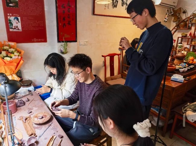 一、实践背景:古艺新问,时代召唤 紫砂壶艺作为中华非物质文化遗产的重要组成部分,承载着“方非一式,圆不一相”的造型美学与“茶禅一味”的文化哲思。然而,传统技艺的传承面临传播方式单一、青年参与薄弱等现实困境。数字技术的兴起为紫砂艺术的保护与活化提供了新可能。以此为出发点,一支由陶都学子组成的跨界团队于2026年2月返乡开展寒假社会实践,探索数字赋能紫砂文化的可行路径。 二、团队介绍:跨界回归,青年担当 泥心塑梦团队由五位毕业于江苏省宜兴中学培源班的青年组成,现就读于东南大学经济、医学、物理等不同专业。团队成员兼具乡土情怀与跨学科视野,涵盖设计、媒体、艺术等多元背景,致力于以青年视角与前沿知识,推动紫砂文化在当代的传承与创新。 三、问卷调查:数据指引,需求导向 在实践开展前,团队围绕紫砂文化认知与传播偏好进行了问卷调查,共收集有效问卷231份。数据显示,受访者年龄集中在19-30岁(80人),以学生群体为主(121人)。对于紫砂壶的认知程度,有129人表示“有一定了解”,但仅19人“非常了解”;了解渠道主要来自长辈或同伴讨论(129人)以及网络视频、直播(119人)。在接触频率方面,163人“偶尔接触”紫砂壶,47人“从未接触”。对于未来的数字化传播形式,受访者对“构建紫砂壶三维模型”(126人)和“3D打印辅助设计”(118人)表现出较高兴趣,反映出年轻人对传统文化与数字技术结合的期待。这些数据为团队后续实践方向提供了重要参考。 四、实践过程:四重足迹,深探肌理 团队围绕“访人、习艺、观史、推广”四个维度展开实践,深入紫砂文化现场,记录一手素材,探索传承新路径。 1.访人:坚守与突围 在“云海艺澜”工作室内,团队成员与紫砂从业者深入交流,感受“择一事终一生”的匠人精神。与此同时,团队采访了紫砂直播销售者陈陶涛,了解其在拓展市场中面临的挑战,如直播与制壶时间冲突、消费群体高龄化等现实问题。 2.习艺:体验与创新 在国家级助理工艺美术师韩玉娟的指导下,团队成员亲手尝试制壶,感受“泥性通人性”的工艺哲学。团队还结合3D数字建模技术,创作了以东南大学文化IP“松鼠叮东”为原型的紫砂作品“紫砂叮东”,实现传统技艺与数字创新的融合。 3.观史:仰望与启迪 在中国宜兴陶瓷博物馆,团队观摩了丰富馆藏,并了解了馆内正在推进的3D建模、虚拟展厅等数字化项目,为后续构想数字赋能紫砂提供了宝贵启示。 4.推广:重组与播种 团队将文化传播作为实践的重要一环,通过线下宣讲与线上H5双线并进,拓展紫砂文化的青年触达面。 校园宣讲:团队回到母校江苏省宜兴中学,面向在校学生开展紫砂文化主题宣讲。通过实物展示、工艺讲解、互动问答等形式,带领学弟学妹走进紫砂世界,感受“方非一式,圆不一相”的造型之美。现场气氛热烈,许多学生表示第一次如此深入地了解家乡的非遗文化,激发了传承与传播的热情。 数字传播:为进一步拓展传播渠道,团队自主策划并制作了主题H5作品《与壶相遇》。该H5围绕“泥料—工艺—名壶—历史—精神”五个板块,构建从物质到精神的文化认知闭环。面对技术水平不足、交互设计困难等问题,团队采用一图流方式清晰展示制壶流程,并通过数十次反复调试确保手机端交互精准。虽然最终互动性有所妥协,但核心信息得以完整传达,为紫砂文化的数字化传播积累了实践经验。 五、实践成果:知行合一,薪火初燃 通过本次实践,团队形成了以下四项核心成果: 1.聚焦核心矛盾:识别出手工“慢”与传播“快”、传统审美与年轻市场之间的双重矛盾。 2.验证创新可能:“紫砂叮东”的成功实践,验证了IP融合与文创开发的可行性。 3.构想数字蓝图:初步形成以数字档案库、虚拟体验空间、青年创意赋能为核心的数字化方案。 4.肩负青春责任:团队成员认识到非遗“活态传承”需青年参与,愿成为文化传播的推动者。 (东南大学:余婧瑶、王一奕、裴艺涵、吴周晟、姚抒远) |