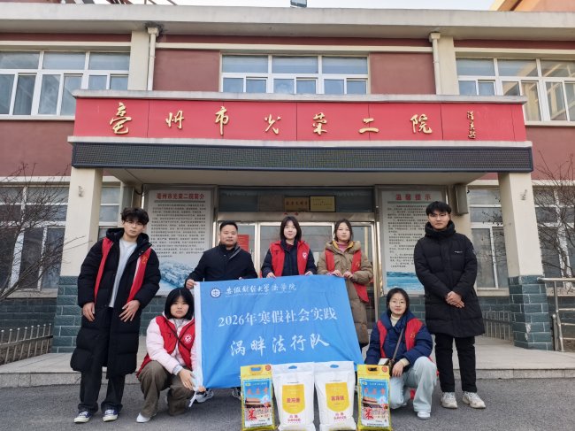 红色铸魂,法治润心。 普法伴温情,致敬峥嵘岁月 文物缄默,载烽火流年 以案释法,守护少年安稳 “涡畔法行队”寒假社会实践特辑(一)|寻访老兵忆峥嵘 普法暖心践初心 1月13日,安徽财经大学法学院2026年寒假社会实践“涡畔法行队”赴光荣二院,开展以“红色法治传统与六尺巷调解智慧的当代融合”为主题的寒假社会实践活动。活动中,队员们向光荣院老兵致以问候并赠送慰问物资,认真聆听张爷爷、盛爷爷等老战士讲述革命战斗经历与后勤保障故事,感受烽火岁月中的奉献精神。结合专业特长,队员们围绕退役军人优待安置等政策,用通俗语言进行了普法讲解,并帮助整理内务、陪伴交流,以实际行动传递温暖与关怀。 “涡畔法行队”寒假社会实践特辑(二)|红色法治融初心 调解智慧践使命 1月31日,安徽财经大学法学院寒假社会实践“涡畔法行队”来到涡阳县博物馆,开展以“红色法治传统与六尺巷调解智慧的当代融合”为主题的寒假社会实践活动。团队通过参观红色展区、深入探寻红色记忆,感悟军民鱼水情,深化对红色法治精神的理解,厚植爱国主义情怀。活动中,队员们在博物馆讲解员的引导下,驻足于战争时期的文物展区。锈迹斑斑的枪械、泛黄的战地书信、百姓支援前线的独轮车,无不诉说着烽火岁月里的壮阔篇章。通过实物与史料结合的讲解,队员们深刻体会到人民群众在革命中的重要作用。大家围绕展区内“战时军民法治共建”史料展开讨论,结合习近平总书记2020年考察安徽时“不忘初心,牢记使命,不忘人民这个根”的重要论述,反思当代青年的责任担当。此外,队员们还结合法学专业特长,就“如何以六尺巷调解智慧化解基层矛盾、服务群众”进行交流,为后续普法实践积累思路。此次社会实践进一步推动红色教育与专业学习的深度融合。涡阳县博物馆将继续支持青年学子挖掘地方红色资源,开展爱国主义教育,引导青年深刻理解历史和人民选择中国共产党的必然性,为传承红色基因、助力法治建设贡献力量。 “涡畔法行队”寒假社会实践特辑(三)|普法进校园 安全伴成长 2月5日,法学院寒假社会实践“涡畔法行队”在涡阳县西阳镇司法所的组织下,前往郭寨中学开展“寒假法治安全教育”主题宣讲活动,为该校师生送上一堂生动实用的法治课。 供稿人:吴涵知 |