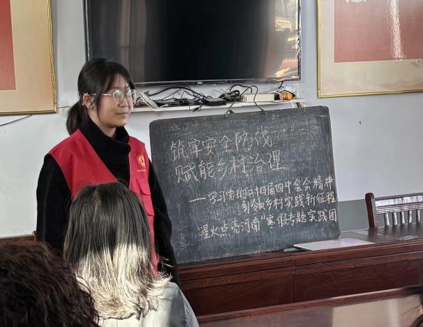 为深入学习宣传贯彻党的二十届四中全会精神,响应“点亮河南”2026年大学生寒假专题实践活动号召,郑州大学政治与公共管理学院“星火点亮河南”寒假专题实践团成员依依托“星火”学生工作品牌,以“理论研学+全域宣讲”的形式,深入郑州、新乡、商丘、安阳、驻马店、漯河六地的社区、乡村、校园开展党的二十届四中全会精神专题宣讲实践。9名政管青年学子化身基层理论宣讲员,用接地气的表达、贴民心的形式传递全会精神,推动党的创新理论在河南基层落地生根、入脑入心。 研学铸基强本领,精磨内容贴受众 实践活动启动之初,团队率先走进郑州市二七区国家安全馆、二七纪念堂开展沉浸式专题研学。在专业讲解员的引导下,学子们系统学习总体国家安全观的丰富内涵,深入领会党的二十届四中全会关于国家安全体系建设、基层治理现代化的部署要求,梳理全会精神与基层安全建设、校园安全教育的内在联系。围绕“全会精神如何在基层落地落实”,团队开展专题研讨交流,结合河南基层发展实际谈思考、谋思路,同时从红色历史中汲取精神养分,为后续基层宣讲筑牢理论根基、凝聚思想共识。 为让党的二十届四中全会精神真正走进基层群众、青少年学生心中,团队在指导老师的专业指导下开展集中磨课,坚持“分众化宣讲、精准化传播”,针对社区居民、乡村村民、初高中学生三类不同受众的认知特点和实际需求,量身打造差异化宣讲内容与形式。面向乡村村民,宣讲紧扣农业生产、日常生活实际,融入方言表达和河南本土基层治理案例;面向初高中学生,采用短视频、情景模拟、知识问答等趣味形式,让宣讲更具吸引力;面向社区居民,聚焦居家安全、社区治理等民生关切,让宣讲内容更贴生活。团队分工协作完成3套宣讲稿、3套宣讲PPT的打磨制作,同步制作安全知识小贴士、反诈短视频等配套宣讲载体,让理论宣讲既接天线、又接地气。 全域宣讲广覆盖,全会精神润民心 1月24日,团队在郑州市中原区翰林社区开展首场示范宣讲,以“全会精神进社区,基层治理话安全”为主题,用通俗易懂的语言解读党的二十届四中全会关于完善社会治理体系的重要部署,结合各地基层治理的典型案例,让社区居民直观感受到全会精神与日常生活的紧密联系。宣讲现场,团队重点围绕居家“三清三关”、燃气安全、网络反诈等实用知识展开讲解,通过互动问答的形式与居民面对面交流,现场解答大家在生活中遇到的安全问题十余条,贴心的讲解、实用的知识赢得社区居民和工作人员的一致好评。 示范宣讲后,团队成员按照分工奔赴各地开展返乡分散宣讲,先后在商丘工学院附属兴华学校、辉县二中、林州市实验中学、驻马店市第八初级中学、漯河高中西校区5所学校,以及安阳市殷都区水冶镇寨子村党群服务中心开展专场宣讲,累计覆盖基层群众、初高中学生500余人。针对高三学子,宣讲结合高考备考与青年成长发展,解读全会精神对青年一代的要求,引导学生将个人理想追求融入国家发展大局;针对初高中低年级学生,设计“国安知识小闯关”“安全情景小剧场”等互动环节,让学生在轻松有趣的氛围中学习国家安全、网络安全、粮食安全等知识;针对乡村村民,全程采用方言宣讲,围绕基层治理、农资辨别、农业生产安全、居家安全等内容展开,现场解答村民生产生活中的疑问十五余个,真正把党的二十届四中全会精神和实用知识送到基层一线、送到群众身边。 调研问需明方向,知行合一促成长 在开展宣讲实践的同时,团队同步开展基层微调研与面对面访谈,以现场访谈、口头问卷的形式,深入了解基层群众、青少年学生对党的二十届四中全会精神的认知情况,以及大家在安全知识、基层治理等方面的实际需求。调研发现,基层受众对与生产生活、成长发展紧密相关的政策解读、安全知识需求迫切,更期待通俗易懂、形式鲜活的理论宣传方式。此次调研形成的一手资料,不仅为本次宣讲内容的优化完善提供了实际依据,也为后续开展基层理论宣讲、服务基层发展积累了宝贵经验。 从理论研学的深思细悟,到宣讲内容的反复打磨,再到基层一线的实地宣讲,十余天的实践旅程中,9名政管学子克服地域差异、受众差异等诸多问题,在实践中锤炼语言表达、临场应变、沟通协调等综合能力,在与基层群众、青少年学生的面对面交流中,深刻体会到基层理论宣讲“因地制宜、因人施教”的重要意义。大家不仅深化了对党的二十届四中全会精神的理解,更坚定了用专业知识服务基层、奉献社会的理想信念,团队协作的凝聚力、扎根基层的服务力成为本次实践最珍贵的收获。 星火微光聚炬火,青春担当践初心 此次寒假专题实践,是郑州大学政治与公共管理学院“星火点亮河南”寒假专题实践团成员深入推进党的二十届四中全会精神学习宣传贯彻的生动实践,也是政管学子发挥专业优势、服务地方发展的具体行动。郑州大学“星火点亮河南”实践团的青年学子们,以青春之姿、奋斗之态,把党的二十届四中全会精神转化为基层群众听得懂、能理解、用得上的语言,让党的创新理论在中原大地落地生根,为河南基层治理现代化建设、国家安全体系建设注入了青春力量。 下一步,郑州大学政治与公共管理学院“星火点亮河南”寒假专题实践团成员将以此次实践为契机,持续深化