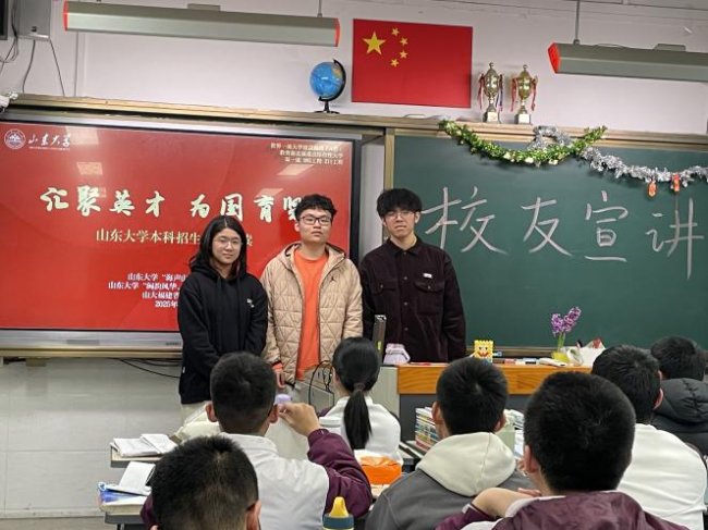 引言 时光荏苒,芊芊学子重回母校。2026年1月22日,宣讲队的成员满怀欣喜,踏入福州高级中学,开展山东大学宣讲活动。 实践背景 福建省福州高级中学是福建省一级达标中学、福建省首批示范高中建设学校、省级示范性普通高中、福建省现代教育技术实验学校、福建省新课程实验样本校、福建省教育教学改革项目试点学校和福建省科技教育基地学校。 现场宣讲 1月22日,宣讲队来到福建省福州高级中学。宣讲队员们利用宣讲材料,精心准备的课件,视频等,深入介绍山东大学的校史校风,专业设置,学科优势,福建省往年招生政策,录取分数线等信息,增进同学们对山东大学的了解。 绝美晚霞,金黄落叶,激光切割,多彩活动......队员们用切身体验向学弟学妹们展示山东大学的人文关怀,学习氛围,优美环境,展现山大魅力,并悉心解答学弟学妹们的问题。 心得体会 在高考志愿填报时,始终存在着学生对高校了解不足的问题。我们真诚地希望为高三学子与高校之间搭建桥梁,帮助他们打破信息的壁垒,我们也真挚地希望能为山东大学树立良好的社会形象,为开展招生工作做出贡献。祝愿学弟学妹们勇敢追梦,历尽千帆得所愿! |